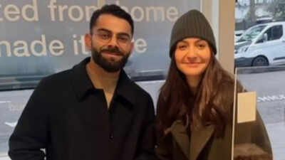 B-town power couple Virat Kohli and Anushka Sharma are back in London and have been spotted again by some lucky fans. The Indian cricketer and his actress wife were spotted enjoying a low-key day out, much to the delight of their fans. Dressed in their winter-wear, and contrasting perfectly in shades of black and grey, the couple put on their best smiles as they joined a lucky fan for a selfie at a restaurant. In the photo that has now gone viral, Virat and Anushka can be seen smiling widely as they pose for a photograph. In the click, Virat was seen holding on to his cup, while stuffing his hand in his jacket to keep warm.