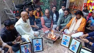 NEW DELHI: Ahead of the big India vs Pakistan match in the T20 World Cup, fans in Kanpur have started praying for India’s victory. At a local temple in Kanpur, Uttar Pradesh, photos of Indian players were framed and placed as devotees offered prayers for the team to win the high-profile clash. India and Pakistan will face each other on Sunday at the R Premadasa Stadium in Colombo, Sri Lanka.